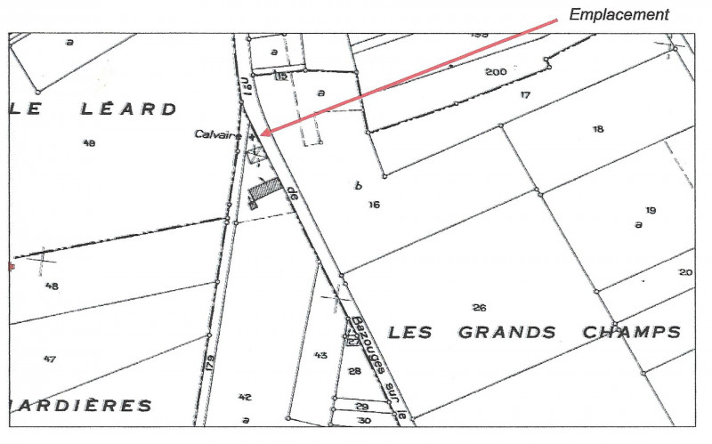 En 1963, le cadastre indique la position de la Croix à l’intersection de la route des Courtils et d’un chemin partant à travers champs, sur la propriété des « Petits Champs.