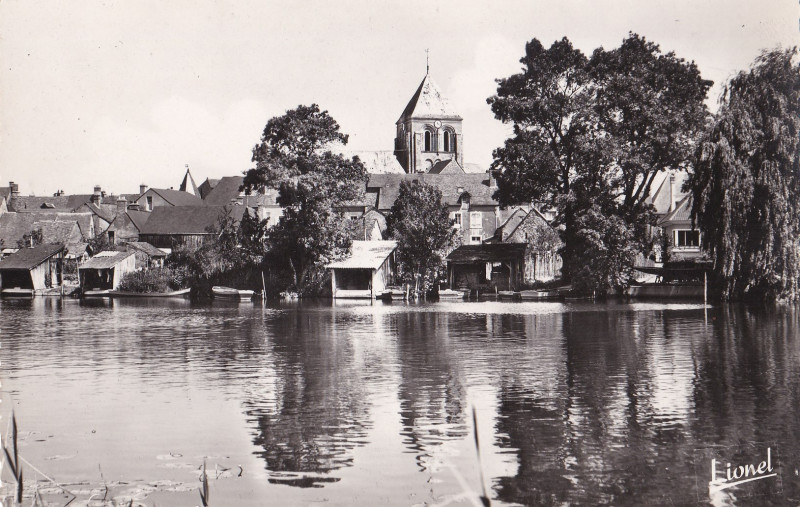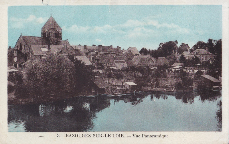 Bazouges sur le Loir dans les années 1950/1960 entre le Vieux Pont et le Château |