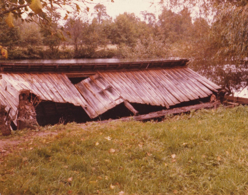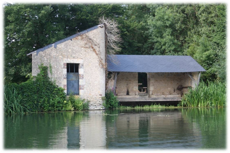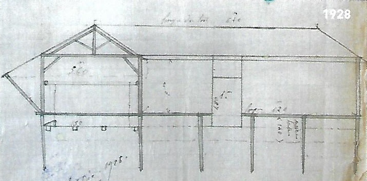 | Le lavoir est construit sur pilotis, sur le Loir, en 1928. D'après le devis, la charpente en chêne est couverte en ardoises. Une porte d'entrée d'un mètre de large donne accès à un plancher mobile de 5,40m de long. Les travaux sont estimés 7844 F. | |