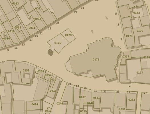 2022 – Plan actuel de la place de l’église – Tour du Pilori en rouge