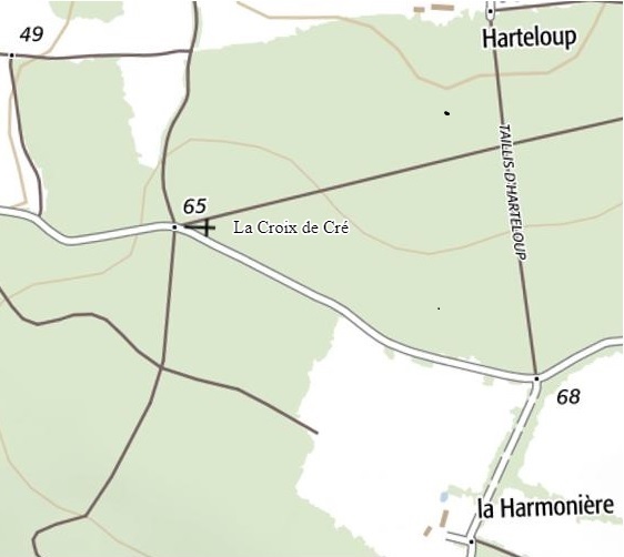 La Croix de Cré est située en haut de la route des Bois, sur la gauche