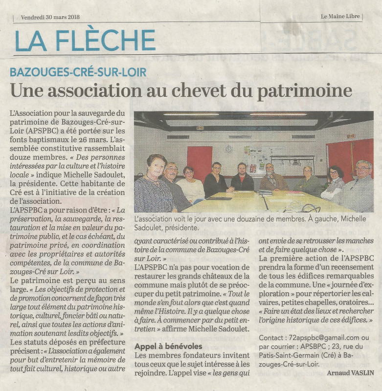 L' APSPBC a été crée en mars 2018 par 12 personnes qui souhaitaient agir pour la mise en valeur et le développement de la connaissance du "petit patrimoine" de leur commune.