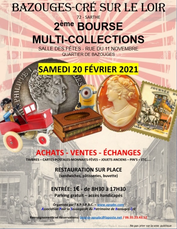 Cette Bourse Multicollections sera reportée d'une année; elle aura lieu le samedi 19/2/2022.