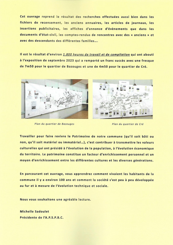 A la suite des Journées du Patrimoine 2023, il a été demandé à l'APSPBC d'éditer un petit livre sur "les anciens commerces de Bazouges Cré sur Loir," thème de l'exposition faite à cette occasion.